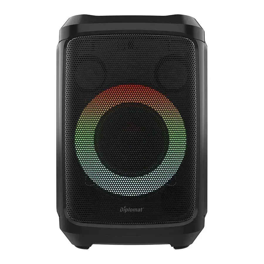 Активна тонколона Diplomat DR5; Говорители: 5.25"+2x2''; Функции: USB слот, AUX , FM радио, Bluetooth; Цветно осветление; Батерия: 12V/5500mA; Честотна характеристика: 48Hz-20kHz; Съпротивление: 4oHm; Мощност: 50W; Аксесоари: Кабел за зареждане, 1бр. безжичен микрофон; Цвят: Черен; Нето тегло: 5.4kg; Бруто тегло: 6.5kg; Размери (ВхШхД): 371x248x248mm; Размери опаковка (ВхШхД): 465x310x300mm; Гаранция за физически лица: 2 години;3254