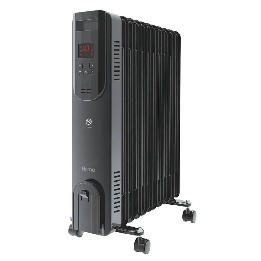 Маслен радиатор 11 ребра с р-р 120*550 мм LED дисплей Дистанционно управление 12-часов таймер Панел за управление с бутони за избор на Режим, Таймер и настойка на температурата 3 степени на отопление - 1000/ 1500/ 2500 W Светлинен индикатор Място за съхранение на кабела Колела за лесно транспортиране Размери (ВxШxД): 61x49.5X11.5 см 2500 W, 220-240 V/50-60 Hz8097