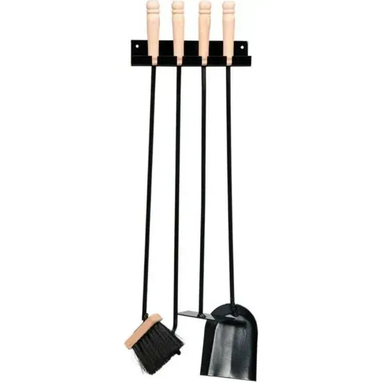 Функционални аксесоари, които спомагат за поддържането на чисти камини, печки и заобикалящата ги среда. Характеристики: • 4 елемента: метла, ръжен, ръжен за почистване и лопатка • Материал: метал • Удобни дървени дръжки • Стойка за стена8162