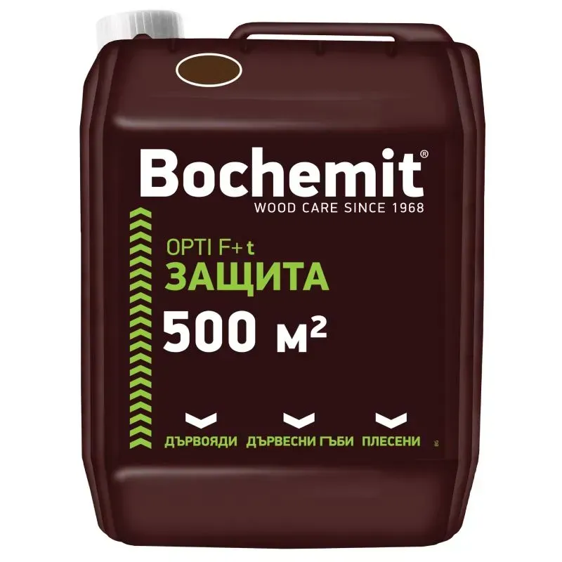 Bochemit Opti F+t 5 кг представлява универсален биоциден импрегнант за дърво под формата на концентрат, който се разрежда с вода. Продуктът е на водна основа и при нанасяне попива в повърхностния слой на дървесината, като по този начи я предпазва от атмосферните условия и вредители. Подходящ за интериорна и екстериорна употреба. Използва се за обработка на всякакви дървени изделия и повърхности с цел удължаване на техния живот и естествени, физически и естетически характеристики като цялост, якост, здравина, красив първоначален вид на дървото.5917