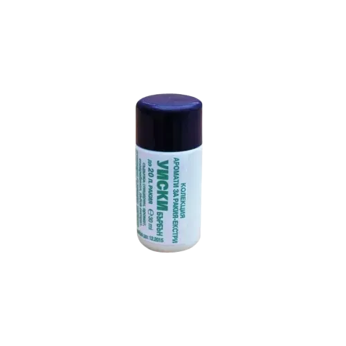 Добавка с аромат на бърбън/ уиски Приложение: В готовата ракия се изсипва и разбърква за постигане на желания аромат Дозировка: 30 мл./50 л. или по собствен вкус Обем: 30 мл. Сертификат: Да5042