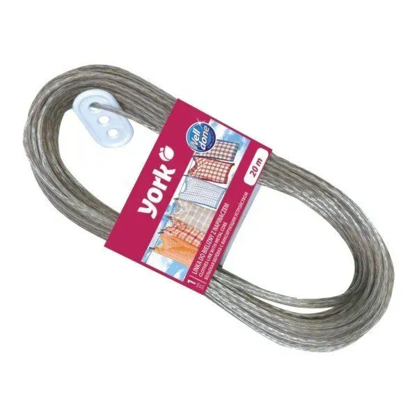 Универсално пластмасово въже за простор, подходящо за употреба на закрито и открито. Разполага с метални нишки за по-голяма издръжливост и специален обтегач за лесен монтаж. Благодарение на PVC покритието на въжето, прането се предпазва от замърсяване. Дължина: 20 m9940