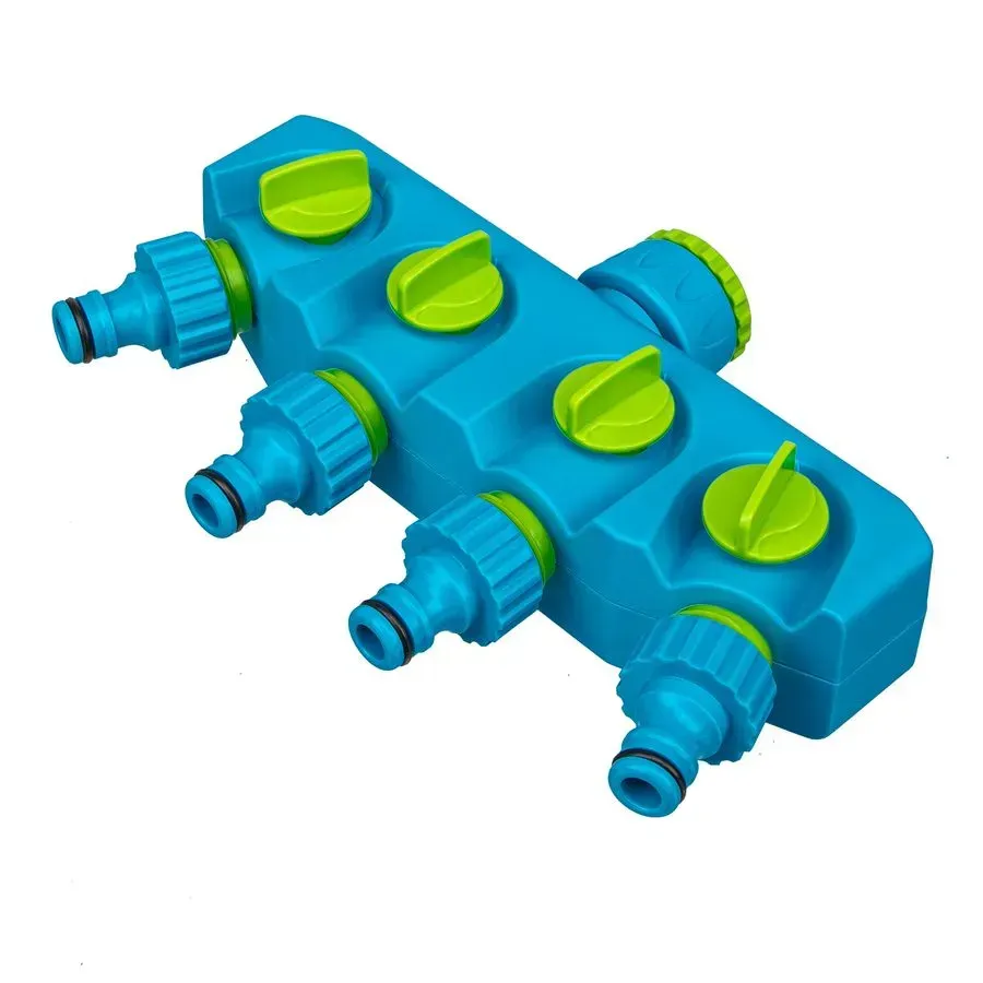 Четириканалният съединител за кран Palisad LUXE 657878 с вътрешна резба 3/4"-1" позволява да се раздели водопроводната магистрала на 4 линии, значително увеличавайки площта на поливане. Монтира се на кран или отвод с външна резба. Подходящ е за организиране на система за поливане на градината.3870