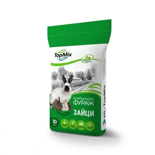 Комбинираният гранулиран фураж за хранене на зайци след 12 седмична възраст гарантира висок средно дневен прираст, при нисък разход на фураж. Повишава здравословното състояние на животните, стимулира имунитета и набавя нужните витамини, минерали и микроелементи. Балансираното съдържание на сурови влакнини гарантира нормалното протичане на храносмилателните процеси и намалява риска от ентерити. Съдържание: Висококачествени зърнени суровини в комбинация с високопротеинови източници. Омега 3 мастни киселини - предотвратява развитието на диарии. Витаминно–минерален премикс - стимулира имунитета на организма и набавя необходимите витамини, минерали и микроелементи. Технологична изработка: Гранулиран519