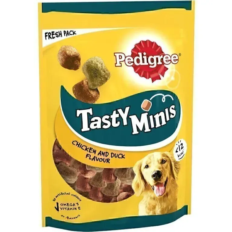 Описание Допълнителна информация Отзиви (0) Pedigree Tasty Minis – това са деликатесни лакомства с апетитно говеждо или пилешко месо. Благодарение на големина си, те са много подходящи да се дават на кучето като малка награда по време на ежедневните тренировки или просто като разнообразна закуска помежду храненията. Малките хапки са богати на полезни витамини, минерали и незаменими омега-3 мастни киселини, които могат да помогнат, както за укрепване на имунната система, така също и за поддържане на здрава кожа и козина на кучето. За да се съхрани естествения вкус, в състава на това лакомство не са добавяни изкуствени оцветители и аромати. Благодарение на практичната, затваряща се опаковка хапките се запазват по-дълго време свежи и вкусни. Pedigree Tasty Minis се утвърждават със своите качества: хапки с месо, подходящи за израснали кучета от всички породи идеални като награда или за внасяне на малко разнообразие помежду храненията с витамини, минерали и омега-3: за укрепване на имунната система, за кожата и козината без изкуствени оцветители и аромати в затваряща се опаковка за запазване на свежестта70497