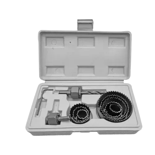 Комплект боркорони изработени от въглеродна стомана с твърдост HRC 20-22. Комплектът разполага с размери от 19 до 64, общо 11 части 1" (19мм, 22мм, 29мм, 32мм, 38мм, 44мм, 51мм, 64мм). Дълбочина - 1" (25мм). В комплекта е включен център за боркорони.4987