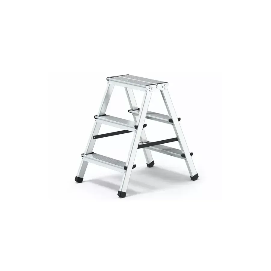 Домакинска стълба, изработена от лек алуминий. Удобен за използване и издръжлива структура, посветена на ежедневните задачи около къщата и случайни ремонти. За да бъде стълбата още по-безопасна са добавени специално проектирани неплъзгащи се стъпала.330015